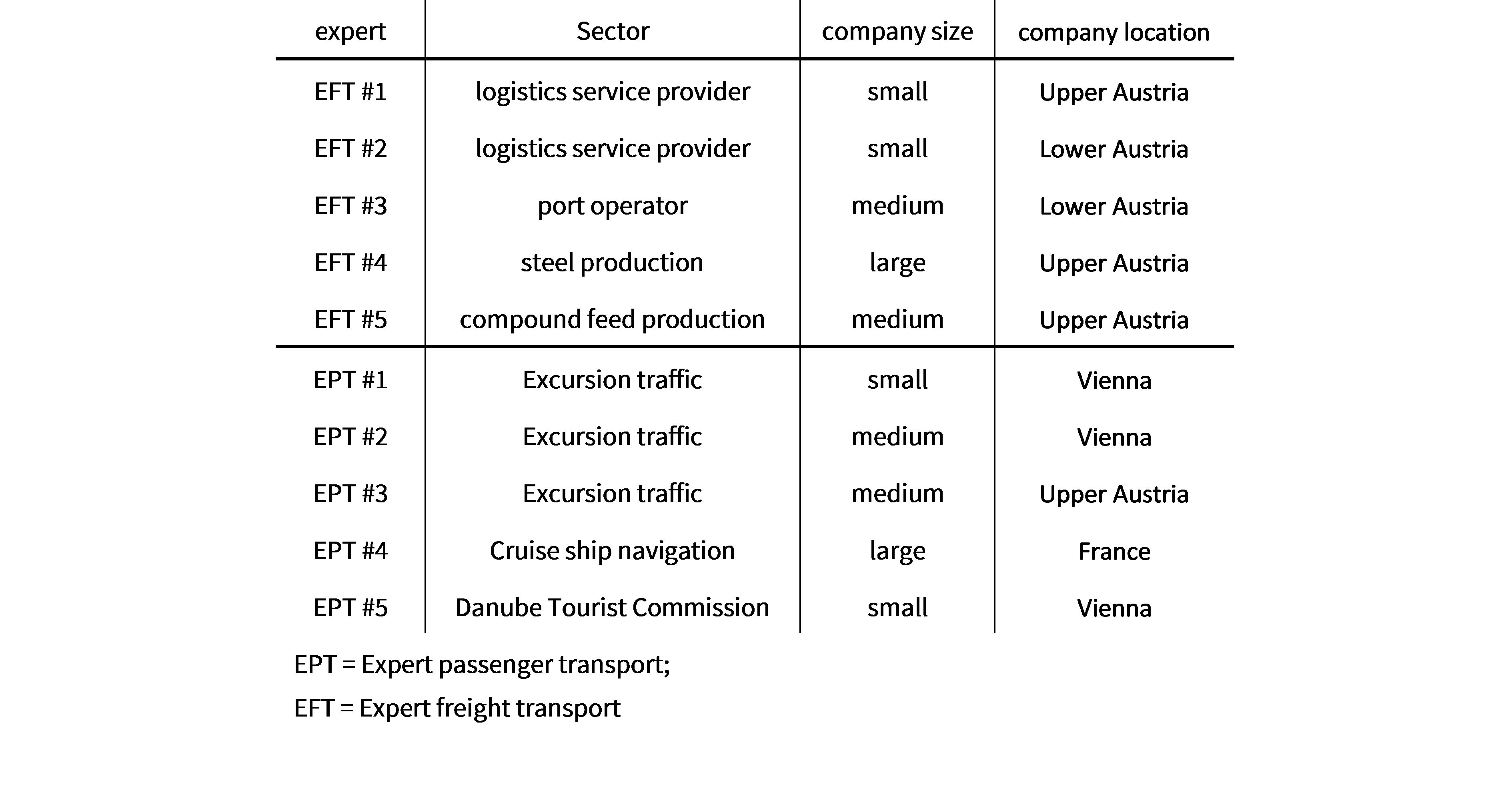 Table 1: Interviewed experts