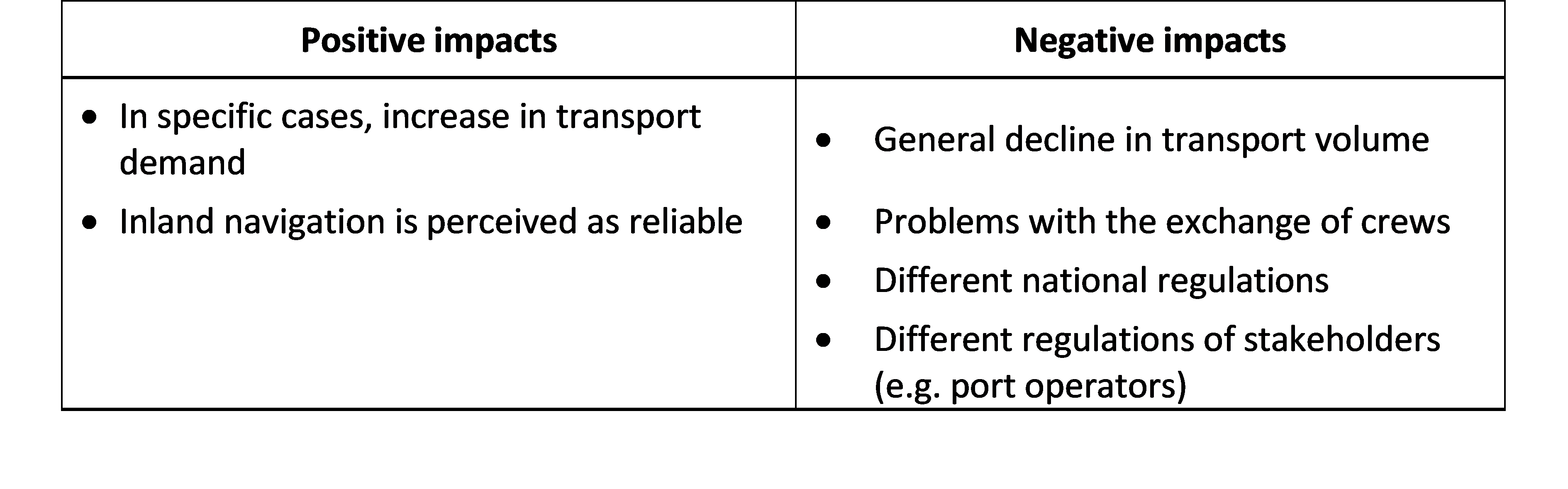Table 2: Impacts of the COVID-19 crisis on freight transport using inland navigation